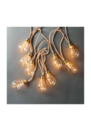 Die Bulb Lights Lichterkette bringt mit 10 LED in Glühbirnen-Optik und USB-Batteriefach echten Vintage Flair in Ihre vier Wände. Entdecken Sie die sanft leuchtenden Glühbirnen als stilvolle Lichtquelle. Ob als Winterzauber zur Weihnachtszeit oder an warmen Sommerabenden auf dem überdachten Balkon, die Lichter spenden genügend Licht, um jeden Abend gemütlich und einzigartig zu machen.