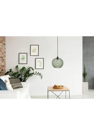 **Moderne Hängelampe aus Glas** Mit dieser Glas-Hängelampe holen Sie sich einen attraktiven Retro-Charme und eine atmosphärische Beleuchtung nach Hause. Durch den Lampenschirm aus Glas gelangt warmes Licht in die Umgebung und sorgt für ein wohnliches Ambiente. Das stilvolle Design verleiht der Lampe gleichermaßen einen angesagten Retro-Charme und einen modernen Gesamtlook. Über dem Essplatz in Küche oder Esszimmer kann die Lampe ideal an der Decke angebracht werden und eine passende Beleuchtung schaffen. Nicht nur als einzeln aufgehängt Deckenlampe macht das Modell eine gute Figur. Auch die Kombination mehrerer Lampen gleicher oder unterschiedlicher Modelle sorgt für ein stimmiges Gesamtbild im Raum. Nutzen Sie beispielsweise zusätzlich eine dimmbare Deckenleuchte oder eine Tischlampe, um bei Bedarf ein stimmungsvolles, weicheres Licht zu erhalten. Die Lampe kann in ihrer tatsächlichen Farbgebung von den Bildern abweichen. Zum Betrieb werden E27-Leuchtmittel mit 40W benötigt, die nicht im Lieferumfang enthalten.