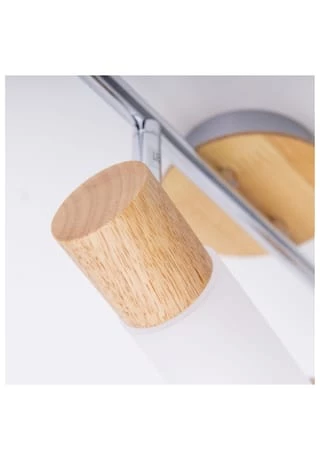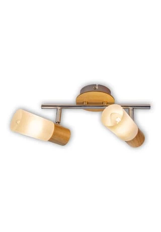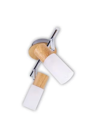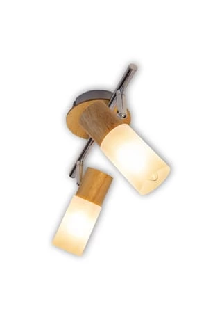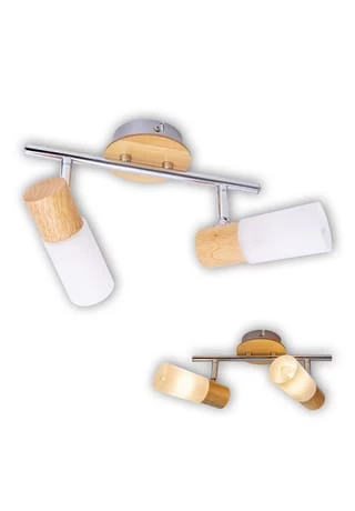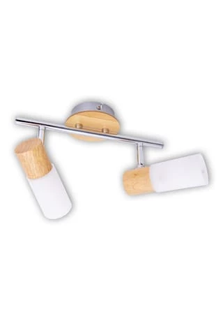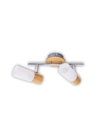 2x E14 max. 5W excl. Leuchtmittel IP20; SKI 230V~ 50Hz Fassungsteil d: 4,5cm; l: 5cm Spot d: 5cm; l: 8,7cm Gesamt l: 13,7cm Stange d:1,27cm. l: 27cm Deckenplatte d: 10cm; h: 2,5cm Material: Kunststoff, MDF, Holz, Metall Holzart: Gummibaum Farbe: weiß, natur