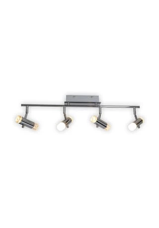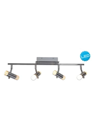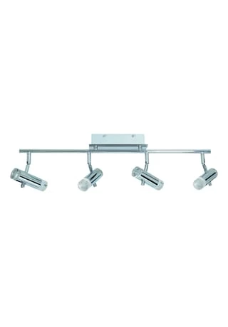 incl. 4x 17 LED 4x 4,5W 3000K; 4x 325lm; IP 20 SK I Lebensdauer 20.000h Energieeffizienzklasse G incl. Treiber 220-240V~ 50/60Hz 30-42V DC I=500mA b: 8cm; l.: 66cm; h:18,5cm Material: Metall, chrom Farbe: chrom, klar Lichtfarbe: warmweiß