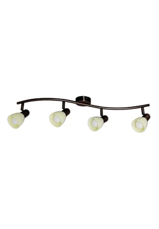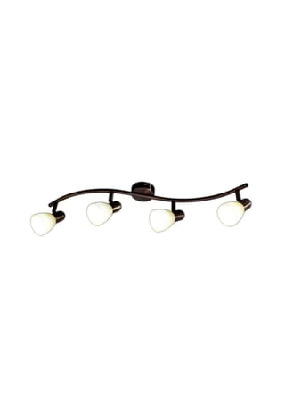 Der braune Wand- und Deckenspot Cunno besticht durch seine vier strahlenden Lampenschirme aus Glas und dem Gestell aus Metall. Die Gesamtlänge dieses Wand- und Deckenspots beträgt 67 cm, die Breite 12 cm und die Höhe 14 cm. Die einzelnen Lampenschirme haben eine Länge von 6,6 cm und einen Durchmesser von 7,2 cm. Die Leuchte ist mit 4 LED-Leuchtmitteln bestückt. Diese haben eine Leistung von jeweils 5 W und erstrahlen mit einer Helligkeit von insgesamt 1600 lm in warmweißer Lichtfarbe (3000 K).Energiesparend und langlebigAufgrund der hohen Leuchtdauer von 20.000 Stunden und der hohen Energieeffizienzklasse von A+ werden Sie sich lange an dieser Leuchte erfreuen.