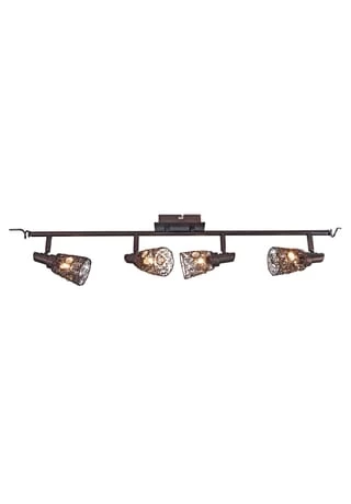 Sockel 4x G9 max. 28W incl. 4x G9 2,5W Energieeffizienzklasse A+ 200lm; 20000h; n=20000x; 3000K; d: 16mm; l: 48mm; nicht dimmbar 220 – 240V ~ 50Hz SK I Spot d:7cm; a:14cm L: 79cm Material: Metall Farbe: rost
