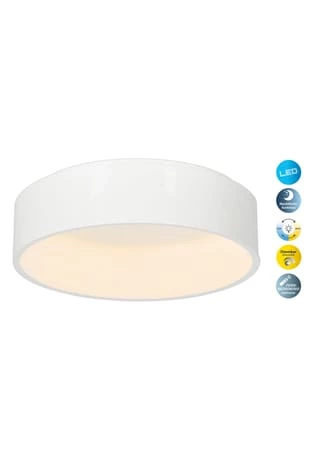incl. SMD LED 60W 4000lm; 2700-6000K; CRI> 80 Lebensdauer: 20.000h; Energieeffizienzklasse: G IP 20; SK I incl. Treiber 200-240V~ 50/60Hz 24V DC, max. 2,15A, max. 51,6W incl. Fernbedienung; Dimmbar 10%-100% mit Nachtlichtfunktion Maße: d: 60cm; h: 13cm Material: Metall, Kunststoff Farbe: weiß