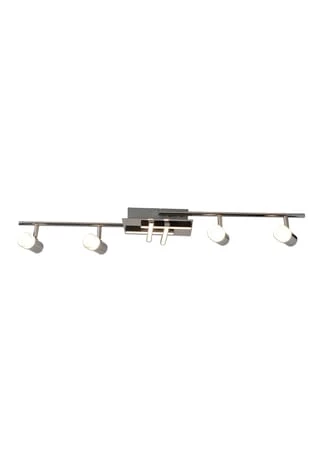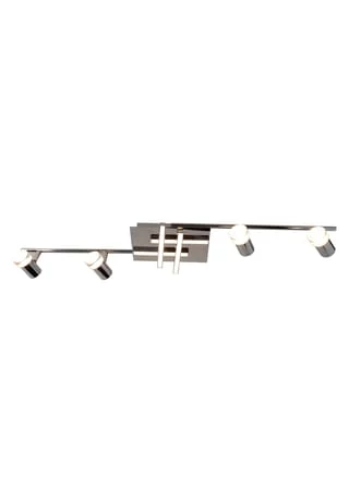 incl 4x 2,4W + 4x 4,35W LED 3000K 2200lm ohne Cover total 27W SK I Energieeffizienzklasse G Lebensdauer bis 20.000h incl. Treiber 220-240V~ 50/60Hz 20-39V DC I=700mA l: 90cm; b: 19cm; h: 11cm Material: Metall (Aluminium/Stahl), Acryl Farbe: chrome, opal, teilsatiniert Lichtfarbe: warmweiß