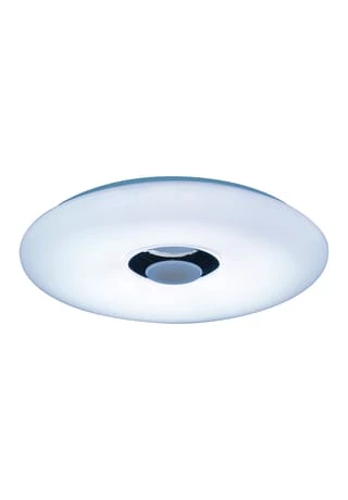 incl. 63LEDŽs SMD 2853 u. 42 LEDŽs RGB 5050 total max. 18W, 2140lm LED-Modul: 15W, 1200lm 2773-6592K IP44; SKII CRI>83 Energieeffizienzklasse: E 220-240V~ 50/60Hz mit Bluetoothspeaker max. 3W incl. Fernbedienung 12,5cm x3,8cm x2cm incl. 2x Alkaline/LR03/AAA/1,5V dimmbar, Farbwechsel, mit Memoryfunktion (FB und Wandschalter) mit Nachtlichtfunktion d: 40cm; h: 6cm Material: Kunststoff, Metall (Eisen) Farbe: weiß