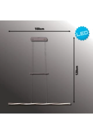 incl. LEDs total 24W 900lm; 3000K; 20.000h Energieeffizienzklasse G incl. Treiber 220-240V~ 50Hz h: 120cm; l: 100cm; t: 8,5cm dimmbar höhenverstellbar mit Jojo-Funktion Material: Metall (Eisen, rostfreier Stahl, Aluminium), Acryl Farbe: chrom Lichtfarbe: warmweiß