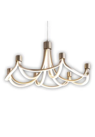 STIL: modernes, leicht verspieltes Design mit geschwungenen Diffusoren in der angedeuteten Form eines Kronleuchters.
