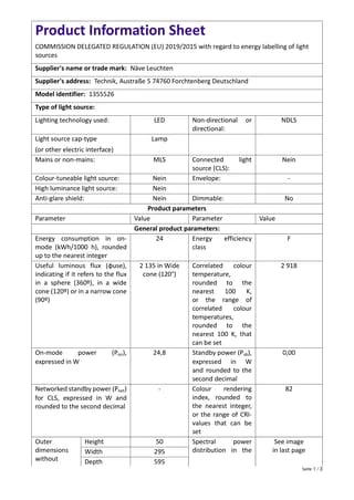 incl. 120x LED SMD 4014/total 24W 3000K, 1900lm; PF>0,9 220-240V~ 50/60Hz Energieeffizienzklasse A Lebensd.:LED bis zu 20.000h incl. Microwave-Sensor: Erfassungswinkel: 360° Reichweite: bis 6m (einstellbar 50%/100%) incl. Dämmerungssensor (< 25lm) incl. Timer-Funktion: 5sek./1min./3min/10min. IP20/SKII incl. Trafo nicht dimmbar l: 59,5cm; b: 29,5cm; h: 5cm Mat.: Kunststoff/Aluminium Farbe: weiß Lichtfarbe: warmweiß Kabellänge: 20cm