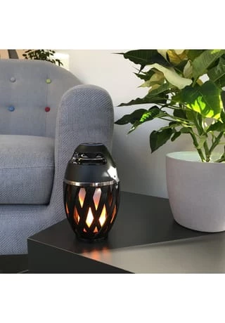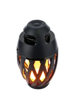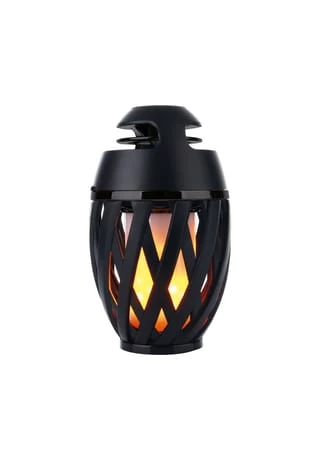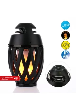 incl. 48x LED mit Flammeneffekt 1400K; 240lm incl. 1x Li-Ion/18650/1500mAh/3,7V Akku incl. USB Kabel – 22cm IP65/SKIII Ladezeit: 4-5 Std. Bluetooth Version: V4.2 Speaker: 3W BT-Reichweite: bis 10m Lautsprecher: 4OHM Frequenzbereich: 2,4G SNR: 75db Energieeffizienzklasse: A h: 16,5cm; d: 10cm Material: Kunststoff Farbe: schwarz Lichtfarbe: gelb-orange