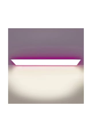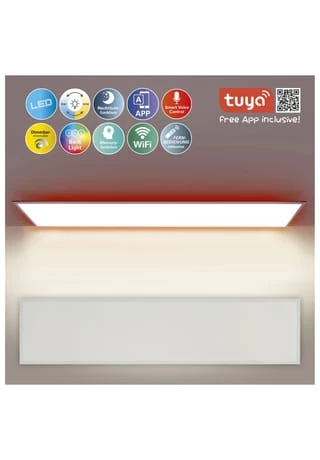 incl. 2835 LEDŽs / 30W frontlight 96xLED SMD4014 2758K-6959K backlight 96xLED SMD5050 4270lm, Energieeffizienzklasse D Lebensdauer: ca. 20.000Std. Frontlicht: warmweiß/neutralweiß/ kaltweiß incl. CCT/Farbwechselfunktion Hintergrundlicht: RGB-Stripe (Goldmatch) RGB&CCT getrennt schaltbar incl. Nachtlicht-/Memoryfunktion Funktionssteuerung via Fernbedienung incl. 2x Zn-Mn/AAA/440mAh/1,5V incl. Treiber PF>0,9 Schaltzyklen: >10.000x IP20; SKII steuerbar über: Tuya, Google Assistant oder Amazon Alexa möglich Maße: l:100cm; b:25cm; h:6cm Einbaumaßhöhe: 3,8cm Material: Kunststoff, Eisen Farbe: weiß Lichtfarbe: bunt dimmbar Zuleitung: 20cm