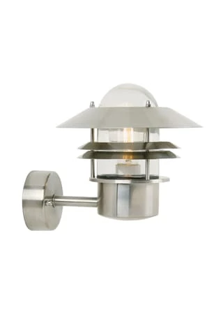Dieses Modell verfügt über einen nach oben gerichteten Lampenschirm. Der stabile Edelstahl Korpus ist auch für Seewasser Nähe geeignet.