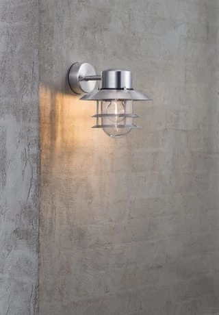 Dieses Modell verfügt über einen nach oben gerichteten Lampenschirm. Der stabile Edelstahl Korpus ist auch für Seewasser Nähe geeignet.