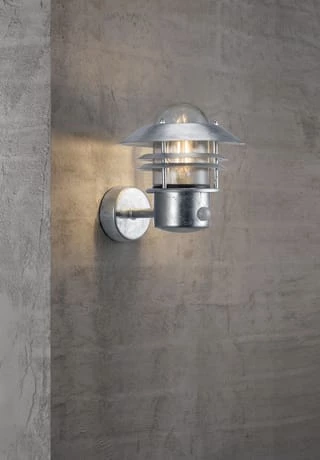 Dieses Modell verfügt über einen nach oben gerichteten Lampenschirm. Der integrierte Sensor sorgt dafür, dass die Lampe automatisch einschaltet, wenn Bewegung in der Nähe registriert wird. Der stabile verzinkte Edelstahl Korpus ist auch für Seewasser Nähe geeignet.