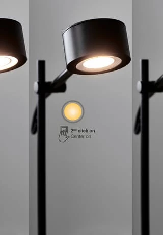 Die Kombination von schlichtem skandinavischem Design und innovativer Technologie wird bei der Clyde-Serie auf überzeugendste Weise miteinander vereint. Clyde verfügt über eine eingebaute Moodmaker-Funktion, dank der das Licht je nach Bedarf und Situation stufenweise über den normalen Wandschalter auf die gewünschte Lichtszene gestzt werden kann. Mit dem 1. Click ist alles an, der 2. Click lässt den inneren Kreis Leuchten, der 3. dann nur den äußeren. angepasst werden kann. Die Leuchte verfügt über ein Anschlußkabel mit Netzstecker. Das Kabel kann auch einfach entfernt werden und ein normaler Wandanschluß erfolgen. Der Kopf der Leuchte ist schwenkbar. Der Dimm-Schalter befindet sich am Leuchten Gehäuse.