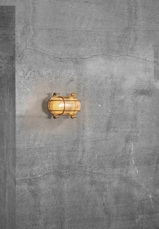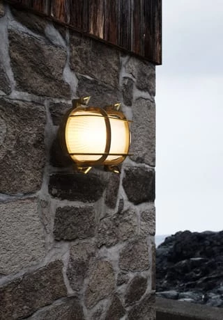 Helford wurde durch das harte skandinavische Wetter mit wilder Natur und tosendem Meer inspiriert. Das maritime Design unterstreicht ihre rustikale Optik und macht Helford zu einer dekorativen Wandleuchte, die sich schön bei Haustüre, bei der Garage oder auch Innen an Wänden, im Flur, Keller oder Bad platzieren lässt. Messing ist ein robustes und wetterbeständiges Material, weshalb sich die Leuchte auch für raue Küstengebiete eignet. Im Laufe der Zeit erhält das Messing eine dunklere Patina, was zu einer schönen bräunlichen Farbe führt.