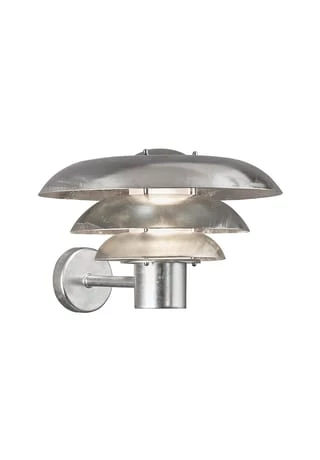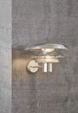 Skandinavisch robuste Aussenleuchte mit schönem Design. Mit Ihrem Gehäuse aus verzinktem Stahl, ist Sie sogar seewasserfest.