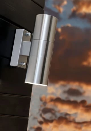 Stilvolle Außenwandleuchte von Nordlux in schnörkellosem Design – eine wunderschöne Lichtquelle für den Außenbereich, beispielsweise an der Haustür oder in der Nähe der Garage. Die Leuchte verfügt über zwei Lichtquellen, die nach oben und unten strahlen. Tin ist auch für den Innenbereich geeignet und kommt hier im Wohnbereich oder Bad ebenfalls zur Geltung. Pflegehinweise: 3-4 Mal im Jahr mit säurefreiem Öl behandeln. In Umgebungen mit aggressiver Witterung raten wir von nicht rostbeständigen Leuchten ab.