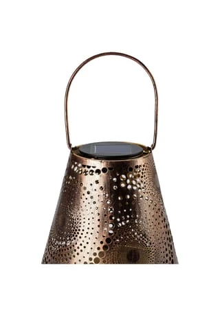 Die Solarleuchte ist allein durch die ungewöhnliche konische Form schon ein toller Blickfang. Zudem erzeugt das orientalisch inspirierte Motiv der Solarlaterne ein schönes Lichtmuster. Eine schöne Deko-Idee für Garten, Terrasse und Balkon.