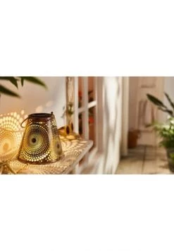 Der Akku lädt sich über Tageslicht auf und bei einsetzender Dämmerung beginnen die 60 warmweißen LEDs zu leuchten
