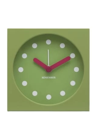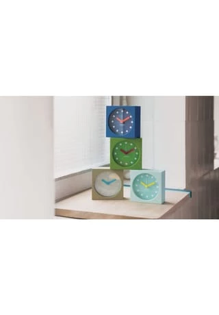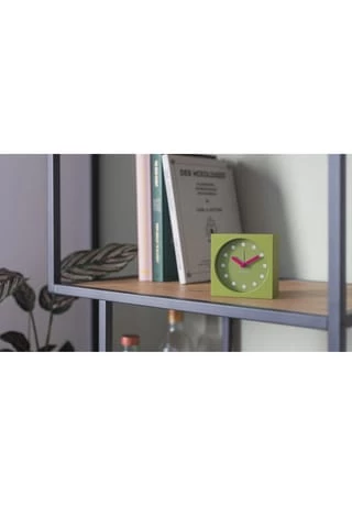 Klare Linien, ein reduziertes Ziffernblatt und Zeiger in prägnanten Farben machen die Tischuhr zu einem schönen Hingucker in jedem Raum. Auf dem Nachttisch sorgt das lautlose Quarz-Uhrwerk für ruhige Nächte – bis der Wecker klingelt. Einfache Bedienung: Auf der Rückseite befindet sich lediglich ein Schalter, um den Wecker ein- und auszuschalten. Zum Stellen der Uhr und des Weckers sowie zum Wechseln der Batterie wird die Klappe an der Rückseite geöffnet.