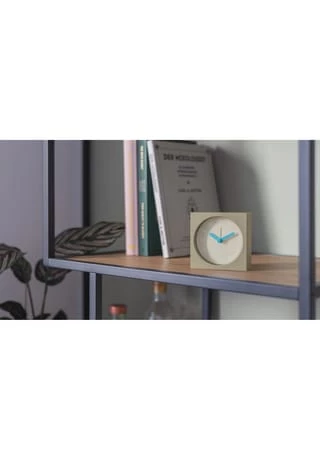 Klare Linien, ein reduziertes Ziffernblatt und Zeiger in prägnanten Farben machen die Tischuhr zu einem schönen Hingucker in jedem Raum. Auf dem Nachttisch sorgt das lautlose Quarz-Uhrwerk für ruhige Nächte – bis der Wecker klingelt. Einfache Bedienung: Auf der Rückseite befindet sich lediglich ein Schalter, um den Wecker ein- und auszuschalten. Zum Stellen der Uhr und des Weckers sowie zum Wechseln der Batterie wird die Klappe an der Rückseite geöffnet.